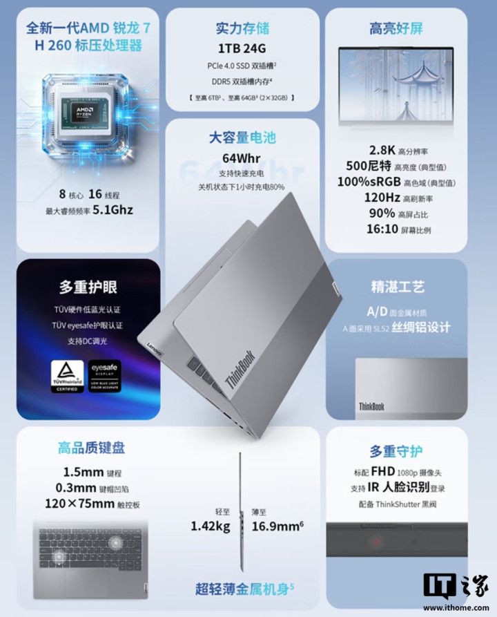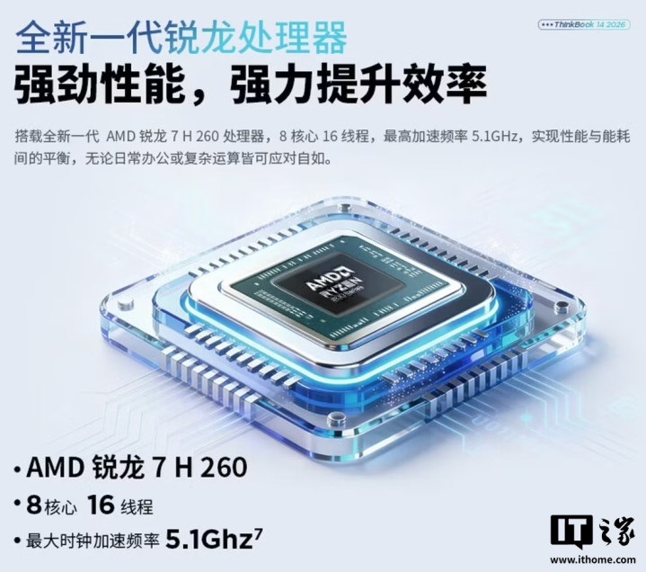 IT之家2月3日消息,联想ThinkBook14/162026锐龙版现已开启新品预约,新品搭载R7H260处理器,24GB+1TB版售价分别是5599元/5699元。