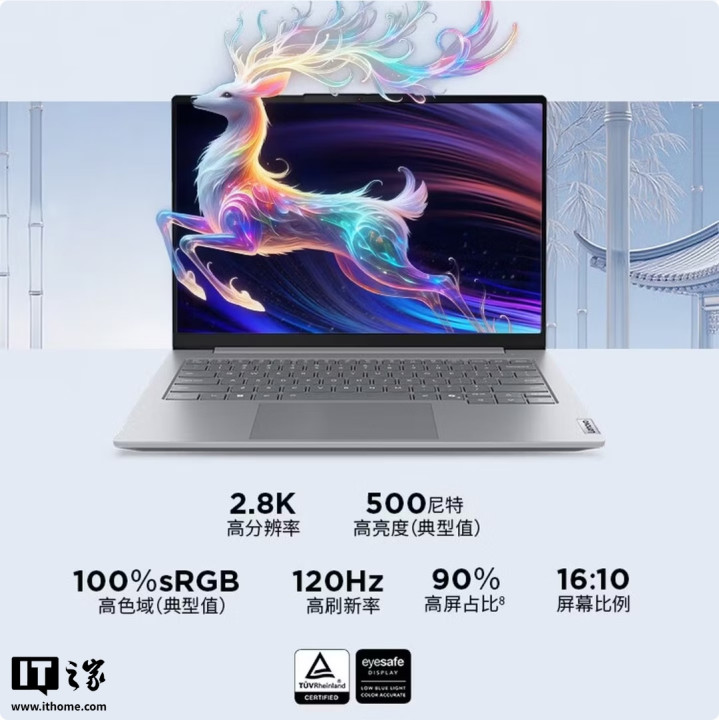 这款产品搭载锐龙7H260处理器,采用8核心16线程设计,加速频率最高可达5.1GHz,配备Radeon780M核显,配备14英寸2.8K屏幕,支持120Hz高刷,最高亮度可达500尼特,覆盖100%sRGB色域。