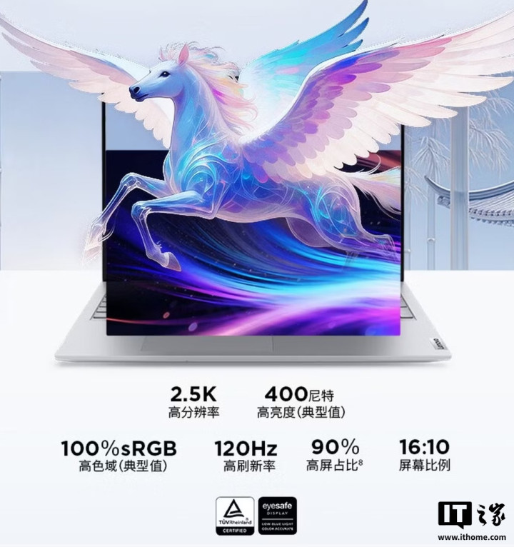 这款产品搭载的处理器、核显与14寸版相同,拥有16英寸2.5K屏幕,支持120Hz高刷,覆盖100%sRGB色域,最高亮度可达400尼特,支持DC调光。